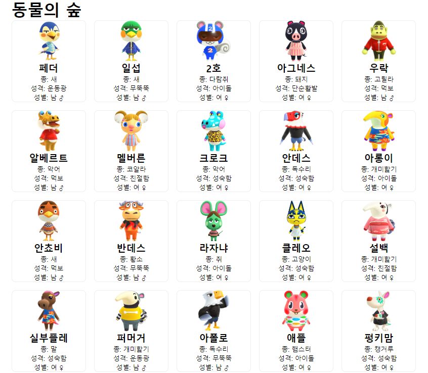 | 동물의 숲 웹페이지 만들기 - 동숲 주민 종류 필터링(4) (0) | 2024.09.05 |