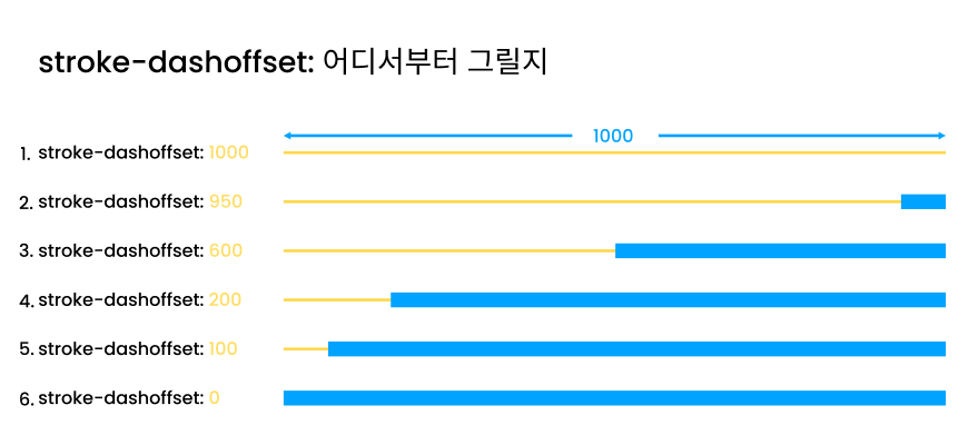 stroke-dashoffset은 얼마큼 공백을 둬서 어디서부터 그릴지에 관한 속성입니다.