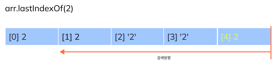 lastIndexOf() 메서드는 === 연산자를 사용하여 비교하며,