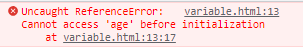 이 코드를 let을 이용해 동일하게 한다면 "초기화 전에 'age'에 액세스 할 수 없다"라는 error가 발생합니다.