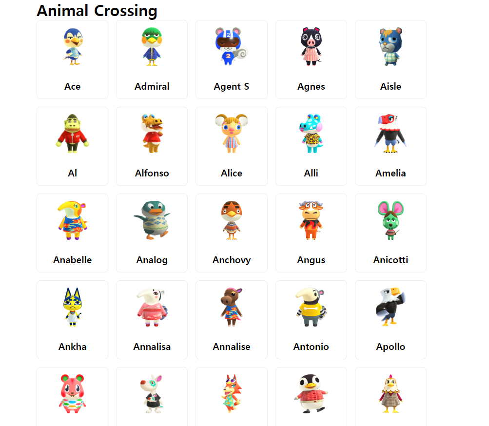 동물의 숲 웹페이지 만들기 - API 불러오기 (1)