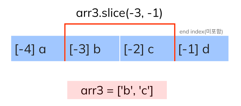 end index는 잘라낼 배열에 포함되지 않습니다.